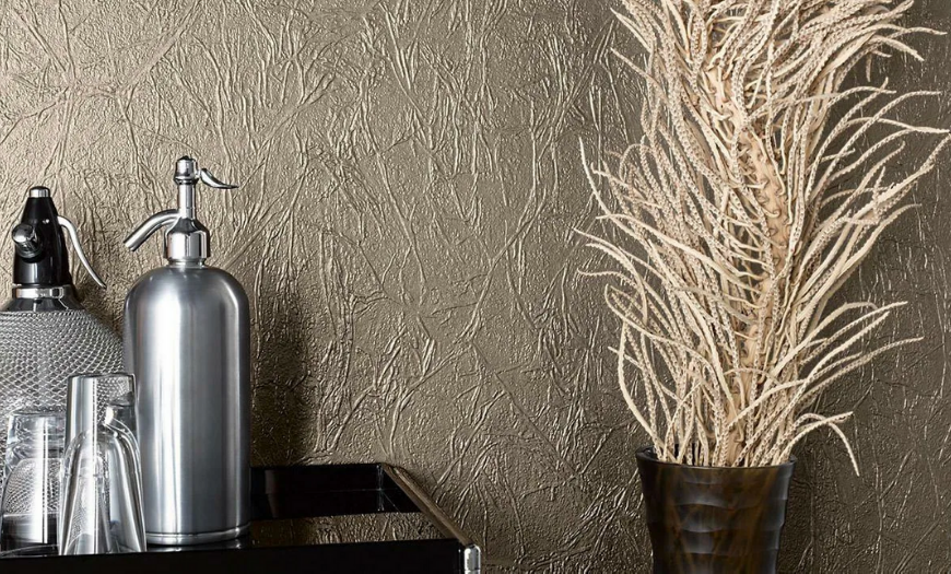 Это покрытие, состоящее из 2 слоев материала. Первый — бумага и флизелин, второй — алюминиевая фольга. Последняя может быть гладкой, с узором или тиснением серебряного, золотого или медного цвета.