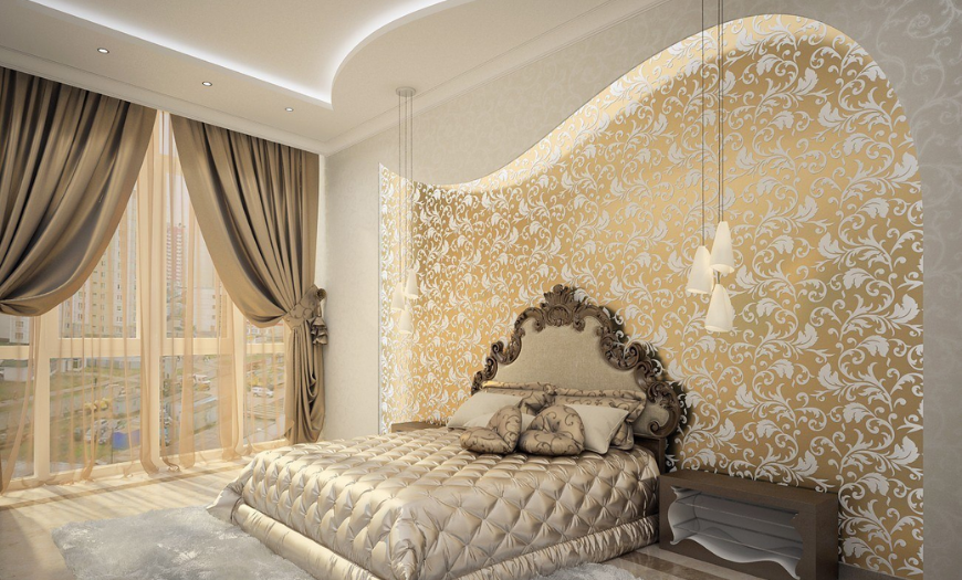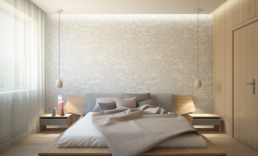 В современных дизайнах интерьера стали чаще использоваться краска, 3D-панели, декоративная штукатурка, но обои не теряют своей уникальности. Можно экспериментировать с ними и выбирать любой материал, ведь спальная комната менее подвержена загрязнениям, чем, например, кухня.