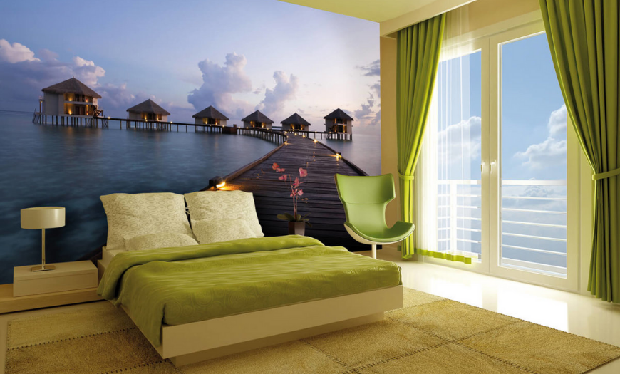 - Фотообои с перспективой, к примеру, изображающие дорогу, ведущую вдаль, зрительно расширяют небольшую спальню.