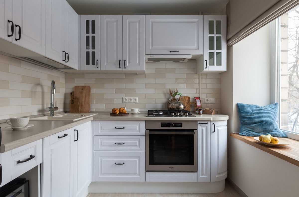 Угловой гарнитур в этом случае будет смотреться не так компактно, как линейный, но позволит разместить больше мест для хранения и сделать рабочую зону просторнее.