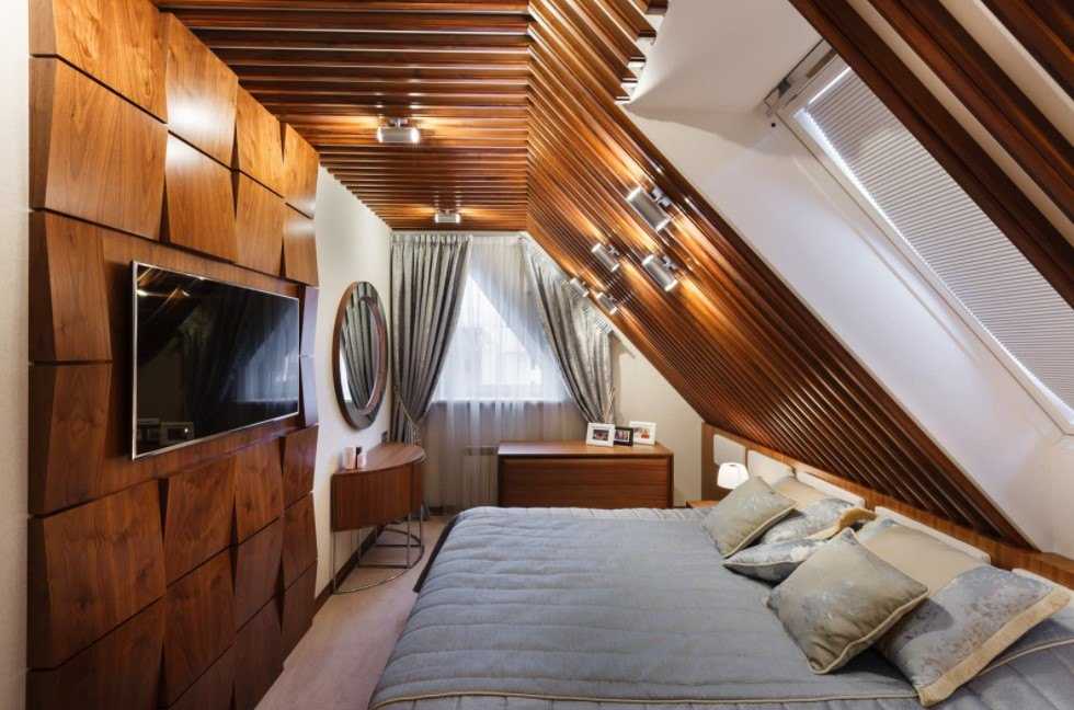Деревянные панели дышат, придадут благородную и комфортную атмосферу комнате. Цвет древесины подбирают под цвет мебели.