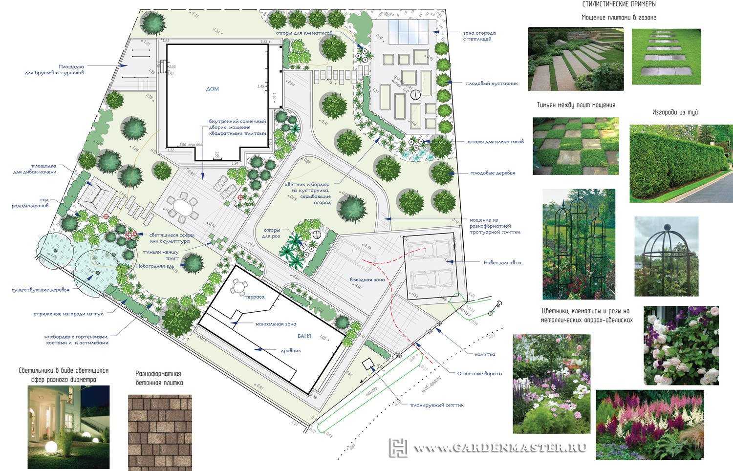 Проектирует концепцию оформления участка с учётом зданий и растений, которые уже находятся на нём. Разделяет пространство на зоны, где будут мостики, дорожки, водоёмы, зелёные зоны с растениями. Планирует, где на участке расположить декоративные элементы, хозяйственные постройки или грядки. Определяется со стилем оформления и продумывает дизайн цветников, дорожек, мебели и освещения.
