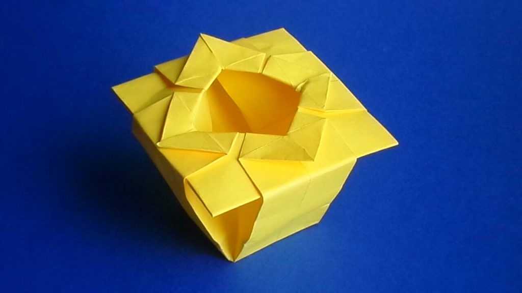Использование более плотной бумаги обеспечит жесткость объемной вазы. Для изготовления следует найти подходящую схему, нарезать заготовки, выполнить стеком линии сгиба и сложить изделие. Для фиксации краев используйте клей или двухсторонний скотч.