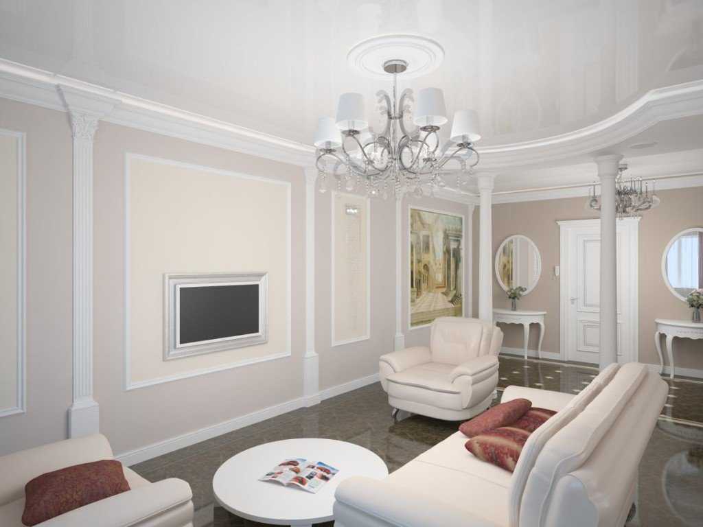 В гостиной декор может быть на стенах, потолке, дверном проеме. Но надо помнить, что если идет отделка деревянных дверей, тогда молдинг тоже должен быть деревянным, а пластиковое окно декорируется пластиком.