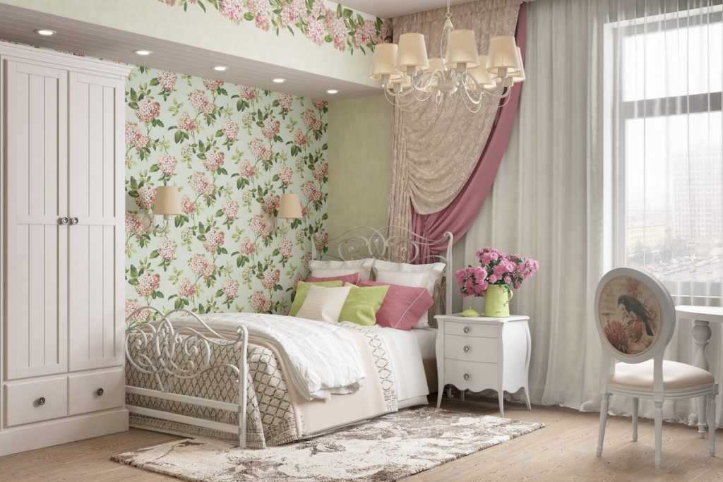Также можно поиграть с фактурой обоев. Они не обязательно должны быть гладкими, а могут обладать выпуклыми рисунками, к примеру, объемными цветами.