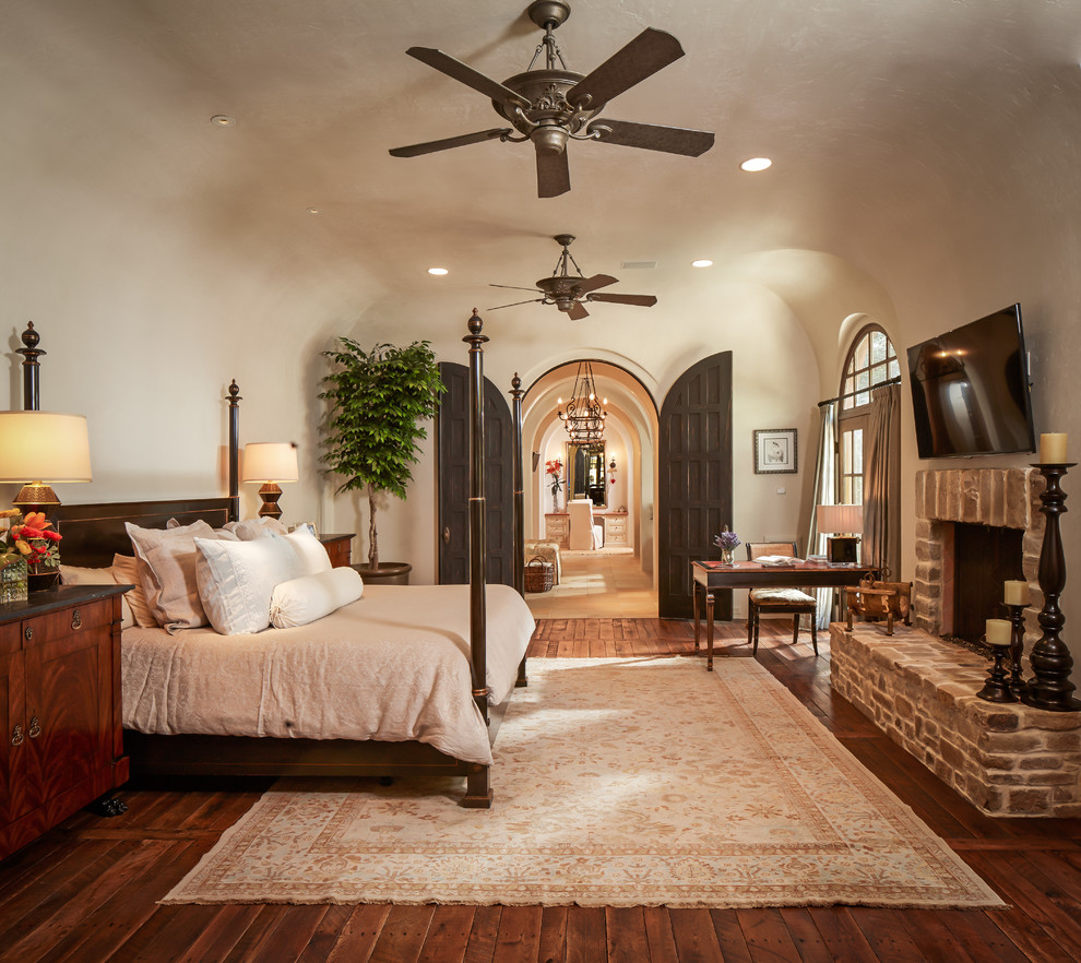 Чтобы избежать монотонности стен, можно декорировать их фресками, гобеленами, светильниками, росписью, витражами из цветного стекла или картинами в массивных рамах, написанными в духе мастеров Возрождения.