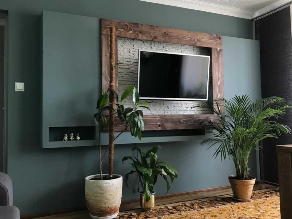 Современная тенденция жить в гармонии с природой четко прослеживается в дизайне интерьера. Модные цвета в гостиной включают различные оттенки зеленого, а также горчичные и древесные оттенки. Покупайте деревянную мебель и размещайте много растений в гостиной. Покрасьте хотя бы одну стену в зеленый или теплый желтый оттенок или нанесите на стену отделку из деревянных панелей. В другом случае попробуйте оживить интерьер гостиной с помощью дополнений в смелых тонах. Это может быть горчичный коврик или кресло, разноцветные шторы с цветами или зеленые листья.