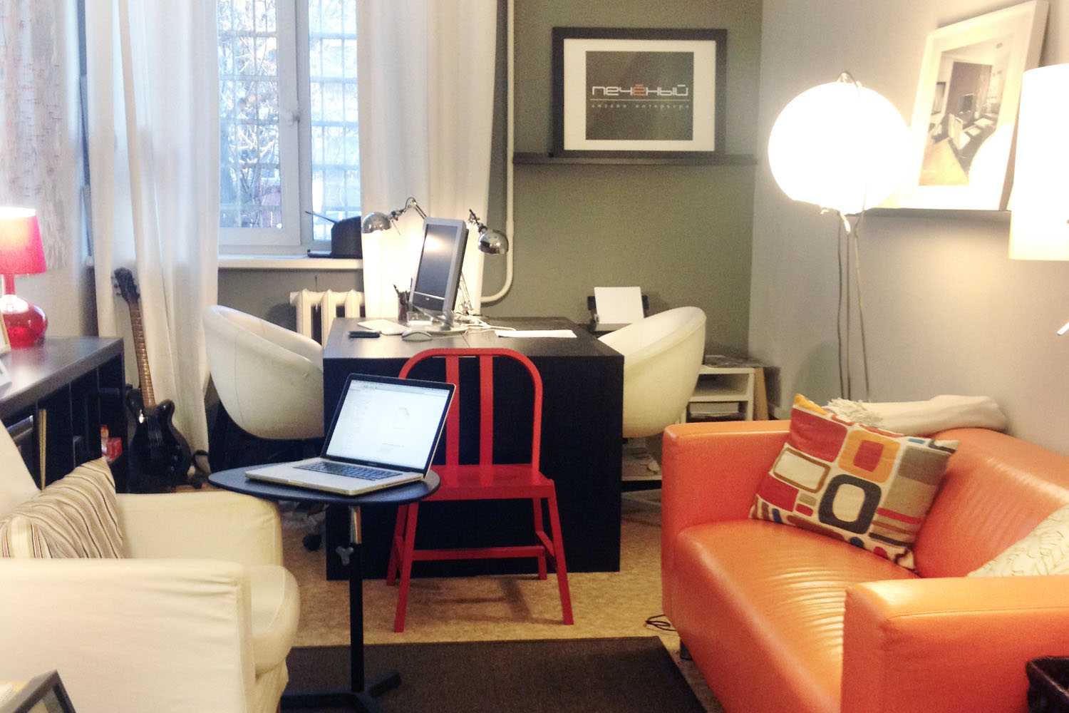 Идея была простой: создать уютное пространство, которое больше напоминает жилой интерьер, чем офис. У нас была корзинка со сладостями, мы ходили в домашних тапочках и заказчики с удовольствием засиживались допоздна, попивая чай с шоколадками.