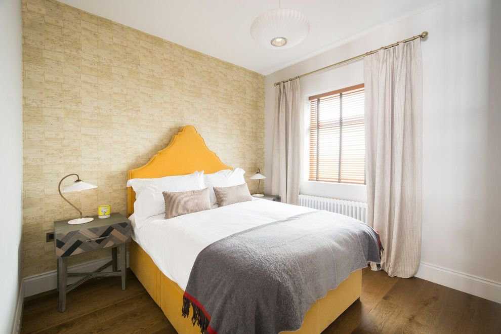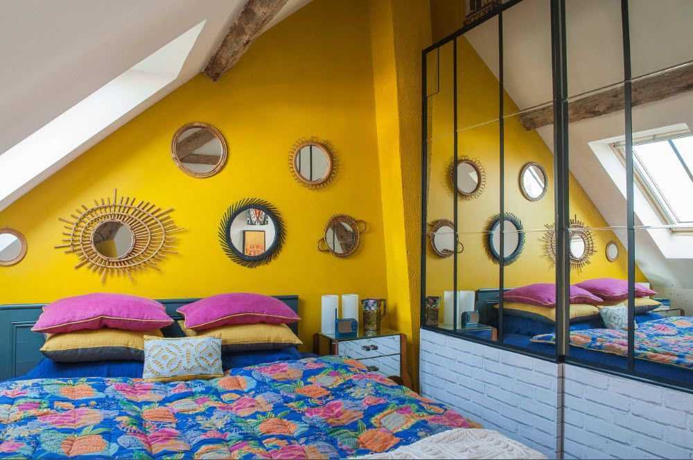 Подобное дизайнерское решение сделает спальню более уютной и солнечной.