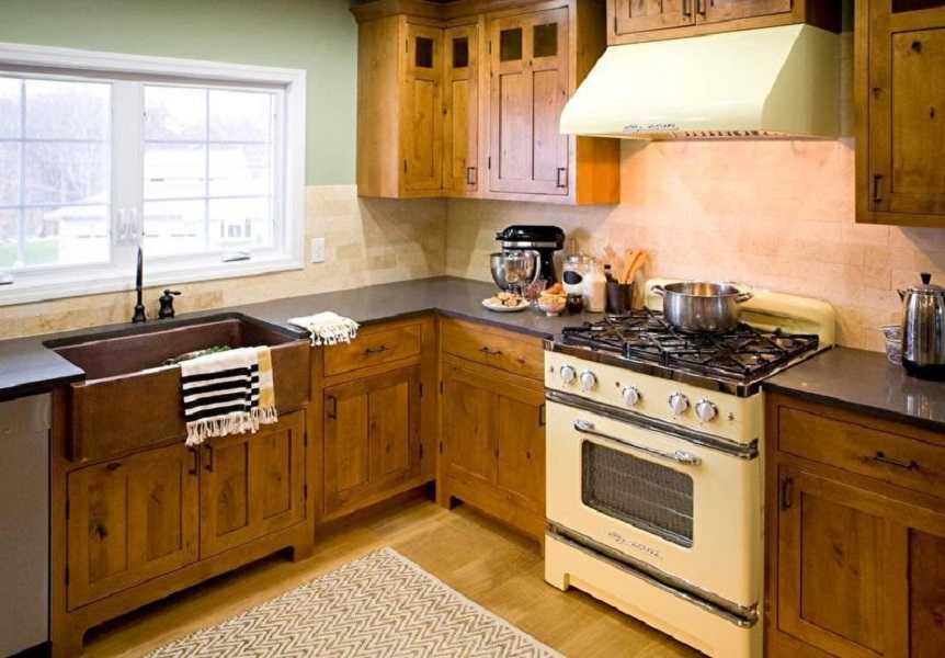 Совсем недавно применение в интерьере природных материалов было привычным явлением, но постепенно их вытеснили полимеры, пластик и композитные составы. Натуральное дерево вошло в класс элитной отделки, зачастую подобный дизайн кухни обходится дороже ультрасовременных стилей. Но высокая декоративность древесного массива по-прежнему ценится очень высоко, поэтому активно используется в стиле кантри. Оформить интерьер в соответствии с деревенской стилистикой можно и при скромном бюджете.