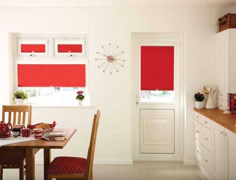 - Когда кухня маленькая. В хрущевках, построенных в середине прошлого века, размер кухни редко превышает 6 кв. м. В результате приходится буквально «бороться» за каждый дополнительный сантиметр полезной площади. Рулонная штора на кухню с пропиткой от запахов и грязи, установленная на дверной проем вместо двери станет ей отличной заменой. Во время приготовления пищи, чтобы кухонные запахи не просачивались в общую комнату, ее опускают, а когда необходимость в изоляции кухонной зоны пропадает, поднимают до самого верха. Еще одно актуальное решение ― установка такой занавески на стеклянную вставку.