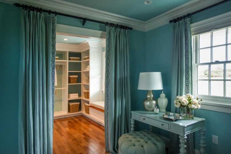 - Когда необходимо обустроить уголок для хранения вещей. Иногда дизайнеры рекомендуют устанавливать рулонные шторы вместо дверей в гардеробную или вместо дверей в кладовку, обустроенные в нише. За красивой занавеской можно быстро спрятать лишние вещи перед приходом гостей, а во время уборки поднять ее и не спеша разобрать накопившийся хлам. Такой декор всегда актуален, так как в каждом помещении он будет гармонировать с другими текстильными элементами, а если наскучит расцветка, со временем его не сложно заменить без особых финансовых затрат.