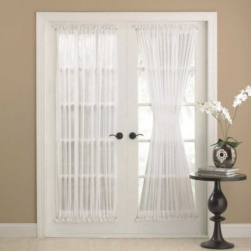 Если нужно прикрыть неприглядный дверной проем, выбирайте классические занавески на карнизе, который будет шире дверного проема на 5-10 см с каждой стороны.