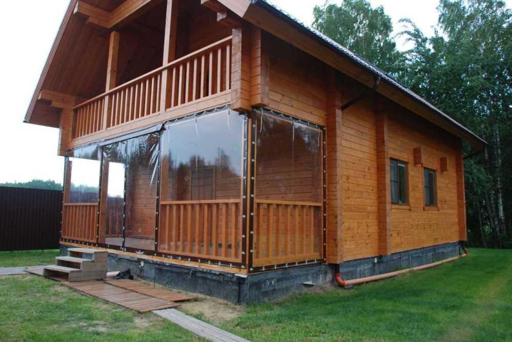 Просторная терраса утеплена ПВХ шторами в тон деревянной отделки