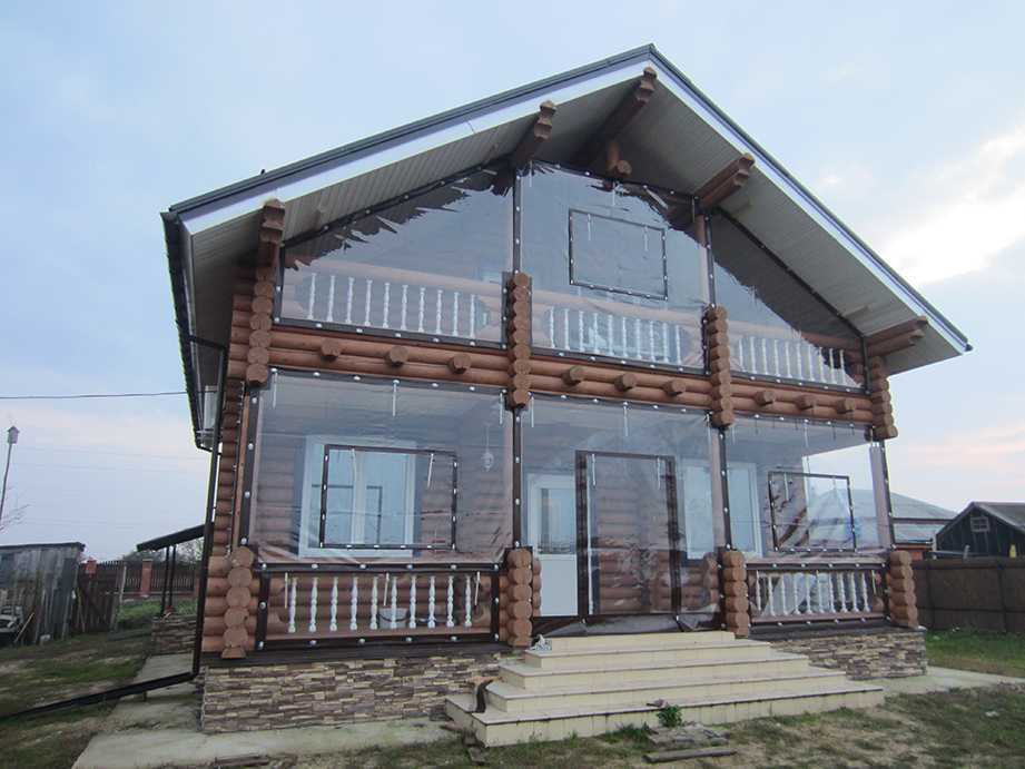 Чаще всего прозрачные шторы для веранды или других открытых помещений изготавливают из ПВХ (поливинилхлорида). Этот материал обладает рядом преимуществ: