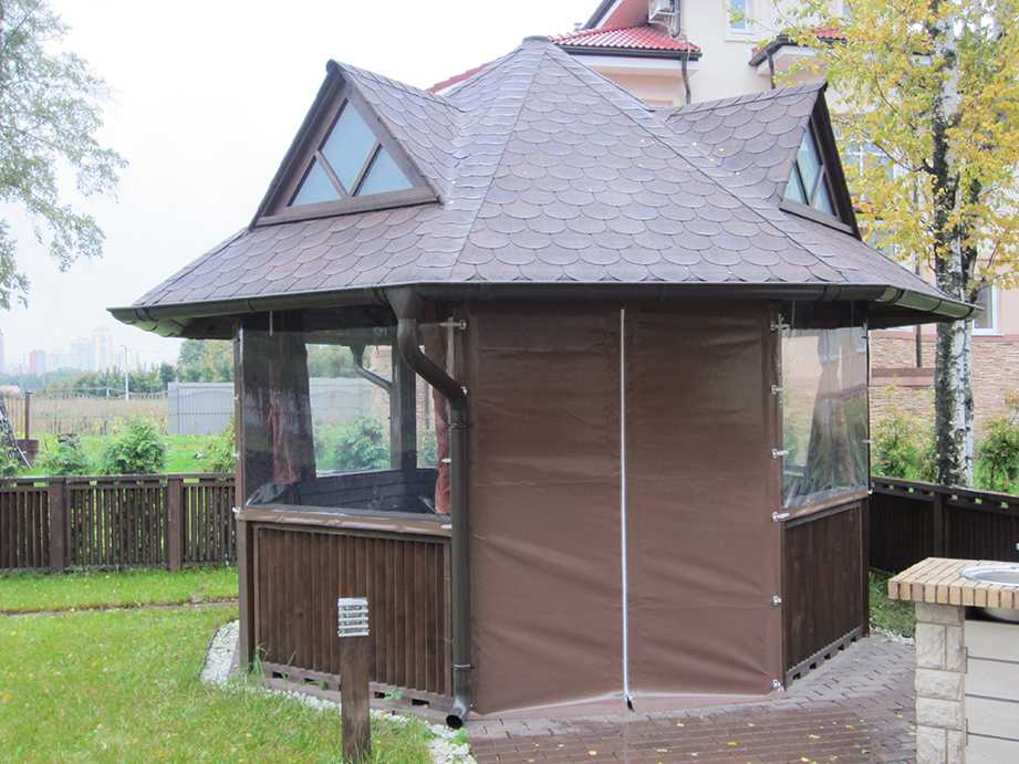 Совет! Эффективно защитят внутреннее пространство беседки шторы на молниях.