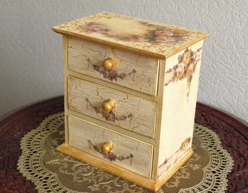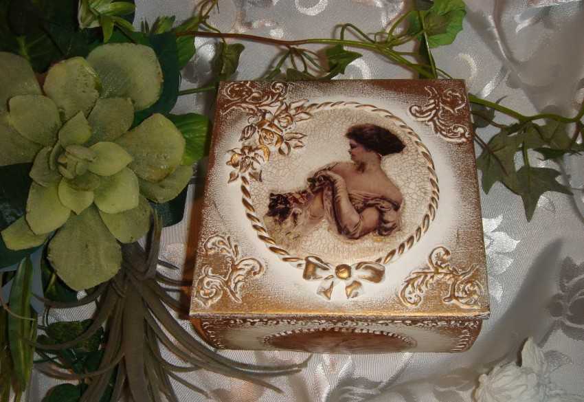 У каждой модницы наверняка есть деревянный сундучок, в котором она хранит драгоценности или бижутерию. Декупаж может творить чудеса, превратив скучную деревянную коробку в милую вещицу. И эту вещицу вы сделали сами. Согласитесь, это вдвойне приятно.