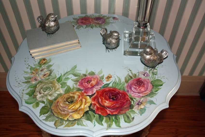Декупаж мебели – вообще отдельная тема для разговора. Журнальные и кофейные столики, садовые скамейки, стулья, буфеты, комоды…