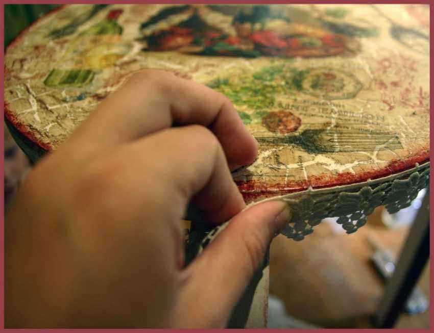 Декупаж при этом практически сливается с поверхностью, на которую нанесен, а граница его сглаживается естественным образом.