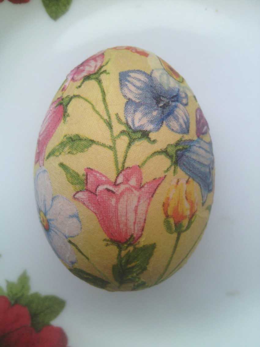 Салфетки, которые будут приклеиваться, лучше рвать руками, а не вырезать нужный элемент. Чтобы ровно приклеить узор, лучше всего использовать рисовую бумагу. Она отлично клеиться и не вызывает лишних проблем, при работе.
