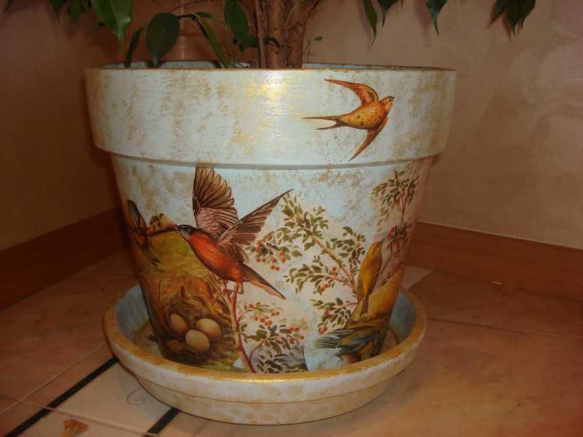 Декупаж с четкими рисунками без состаривания будет хорошо смотреться в современных сдержанных интерьерах