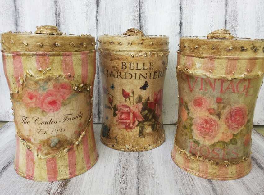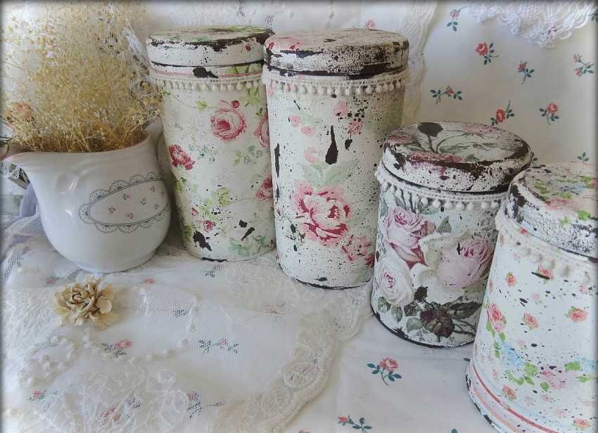 Украшение полок и мелких предметов хранения — классика в декупаже