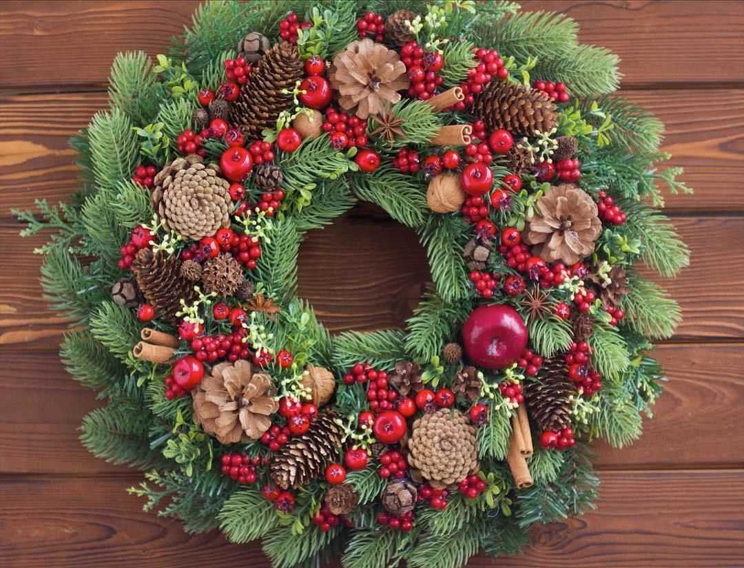 В европейских странах принято венками украшать входную дверь в дом. Но можно его разместить и на стене, шкафу. Чтобы сделать «рождественский венок» своими руками необходимы: