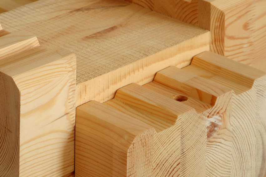 У скандинавского бруса вместо гребенки при профилировании делается стык «шип-паз» с углублением посередине. Подобный профиль позволяет в имеющуюся выемку укладывать утеплитель, который снаружи оказывается невиден. В результате дом из клееного бруса скандинавского вида получается более теплым. Его меньше приходится конопатить, что сильно ускоряет процесс возведения стен.