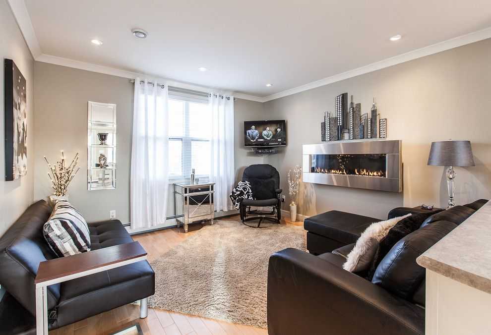 Чтобы избежать подобных проблем, надо организовать мягкую подсветку, источником которым может быть торшер с плотным, рассеивающим свет абажуром или встроенные в потолочный фриз светодиодные светильники, яркость светопотока которых можно регулировать. Но наиболее романтичную обстановку в интерьере зала с фальш-камином позволят создать, конечно же, свечи.