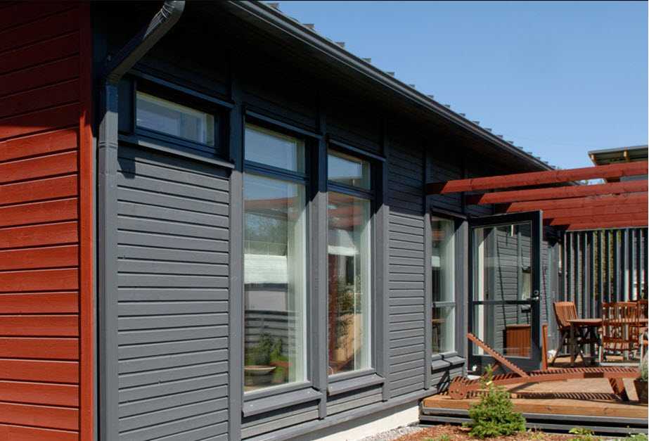 При выборе краски фасада немаловажно учесть соответствие цвета с крышей. Образец должен сочетаться: либо иметь контраст, либо быть в одном цвете разного оттенка