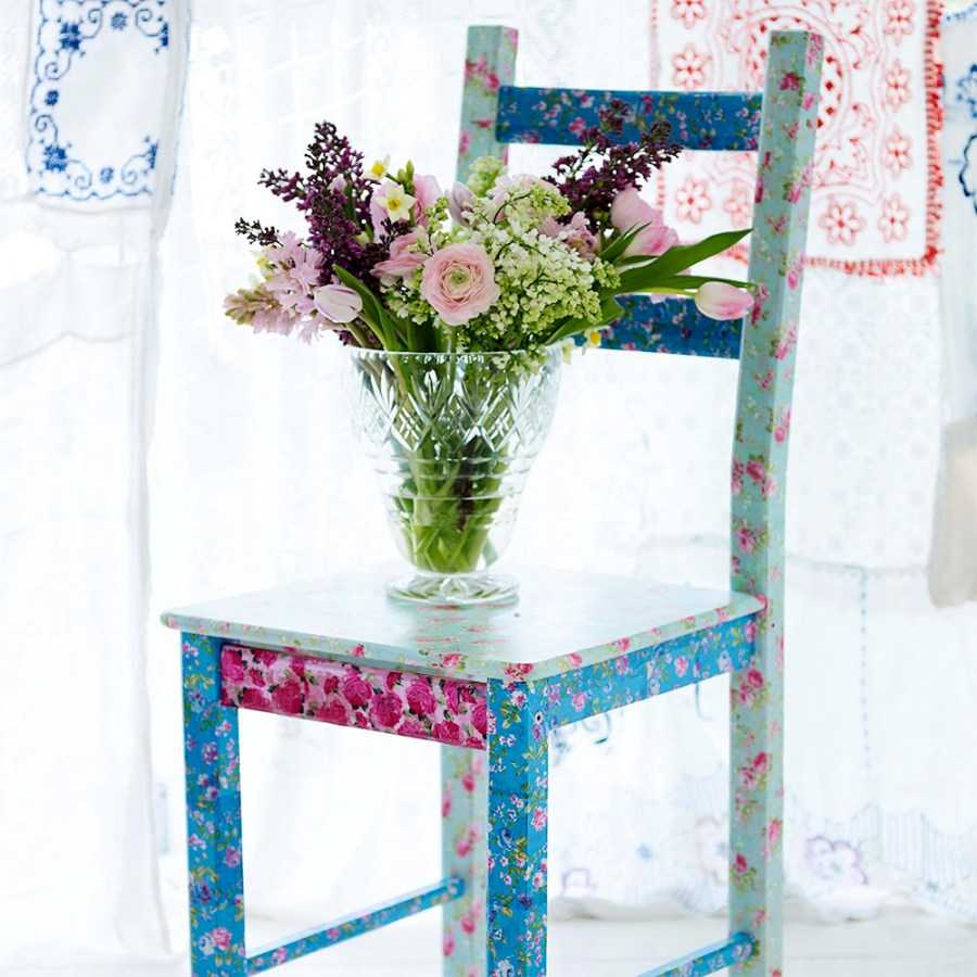 Оживление цвета. Достаточно легкое решение – перекрасить стулья, или, например, старый шкаф в другую цветовую гамму. При этом используйте технику де купажа. Для реставрации старого серванта можно поменять ручки, дополнить цветовыми стеклами его поверхность, или же украсить народной живописью.