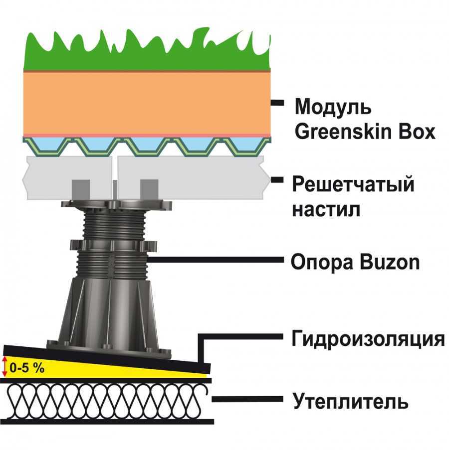 Зеленый настил крыши сохраняет ее основное покрытие на долгое время. Таким образом, при должном уходе достаточно просто продлить срок эксплуатации крыши более чем на 20 лет.