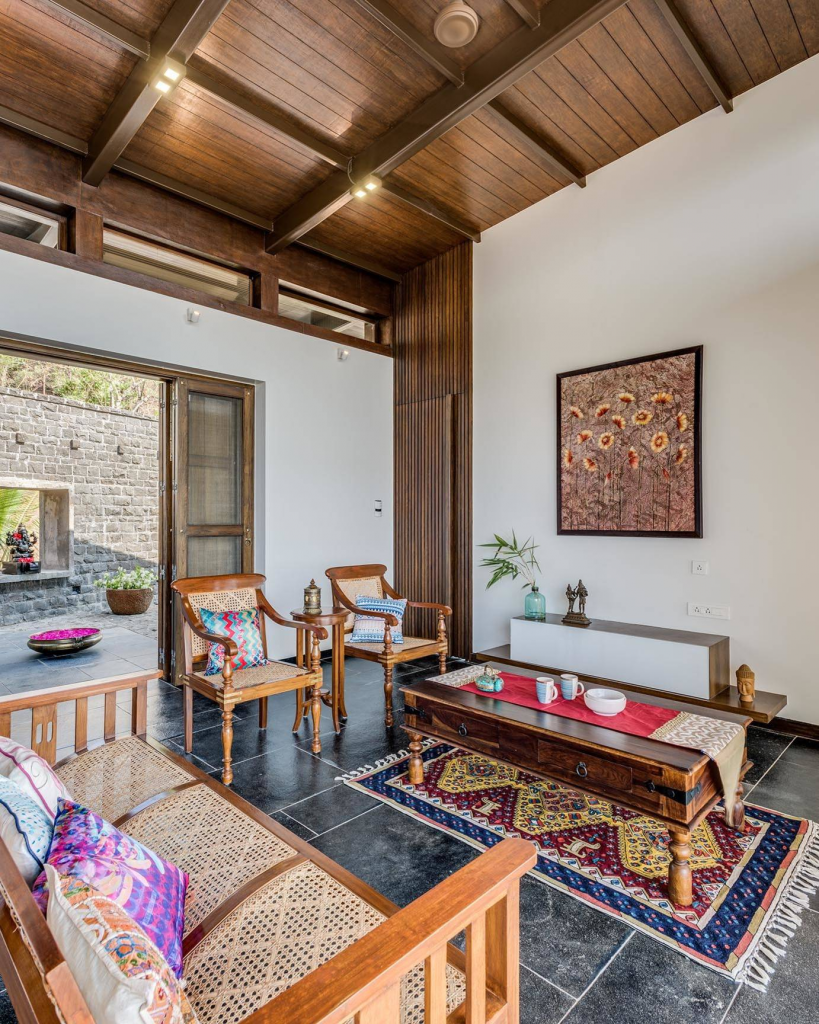 Высокие потолки, арки, пестрые элементы в индийском колониальном стиле