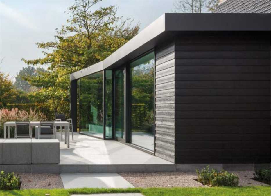 - Облицовка фиброцементными панелями придает постройке привлекательный внешний вид, подчеркивает ее индивидуальность и стиль, а устойчивость к ультрафиолетовому излучению позволяет на долго сохранить это впечатление.