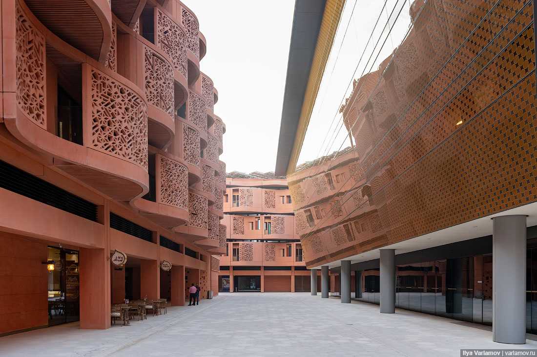Строения будут расположены близко друг к другу, чтобы на улицы проникало меньше солнечных лучей. Здания оборудованы дополнительными щитами от солнца с интеллектуальным управлением – их положение меняется в зависимости от положения солнца.