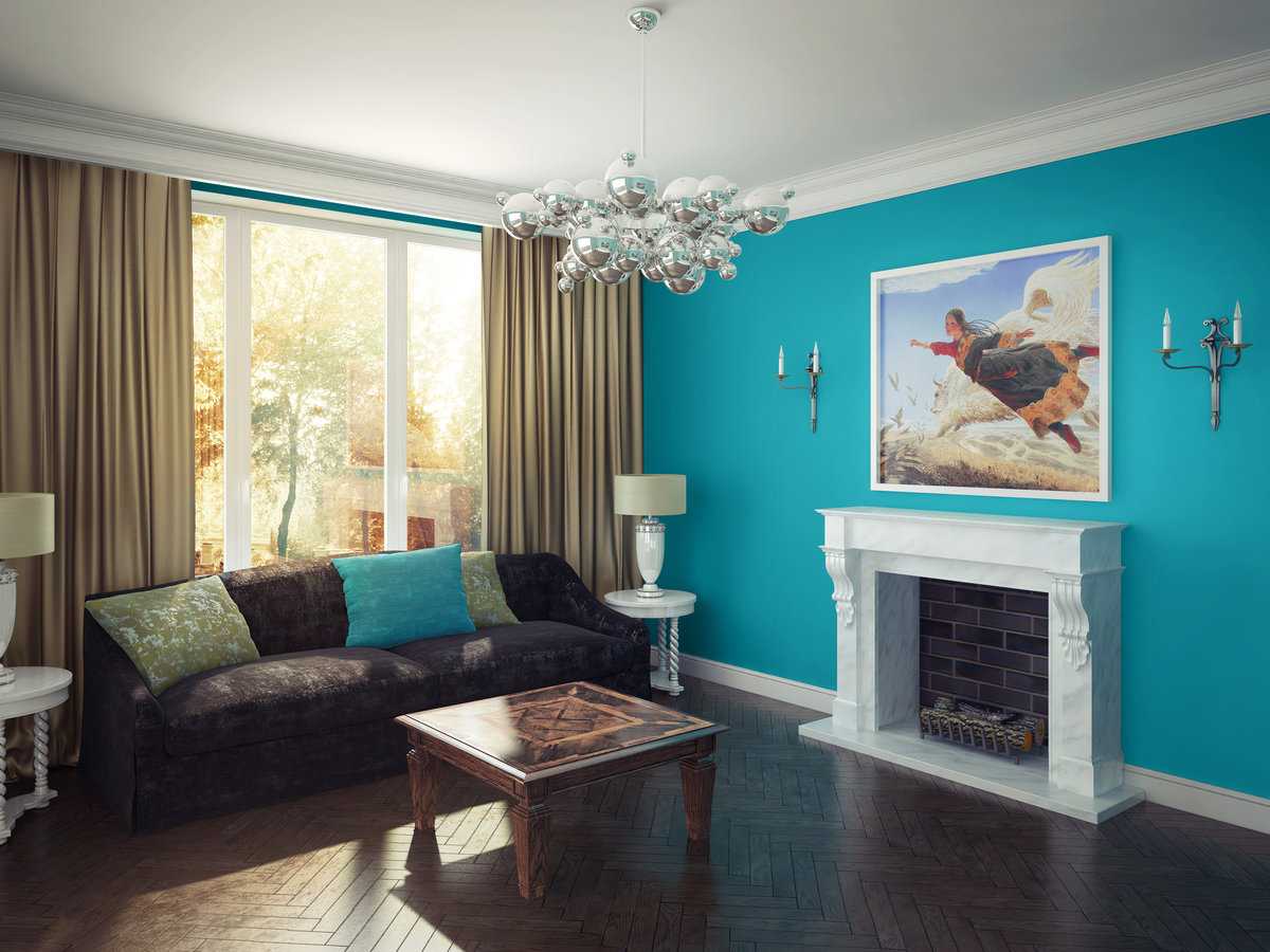 Важно только подобрать остальные элементы интерьера, подходящими к цвету стен;