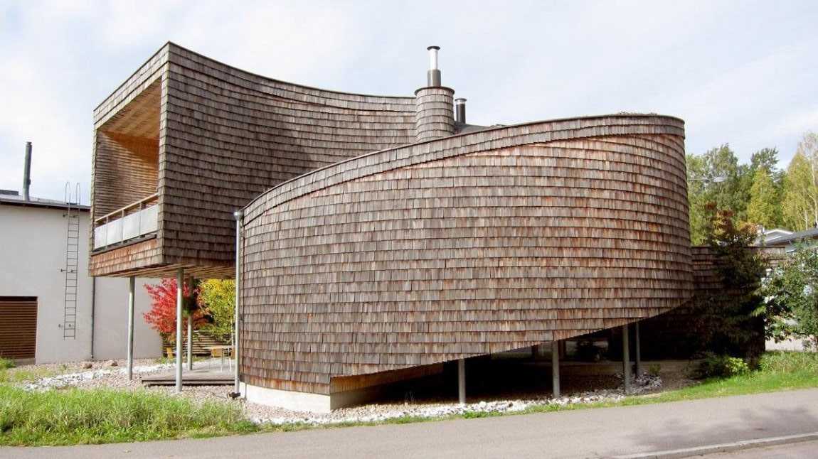 Дизайнерское решение – дугообразная деревянная крыша поверх строения