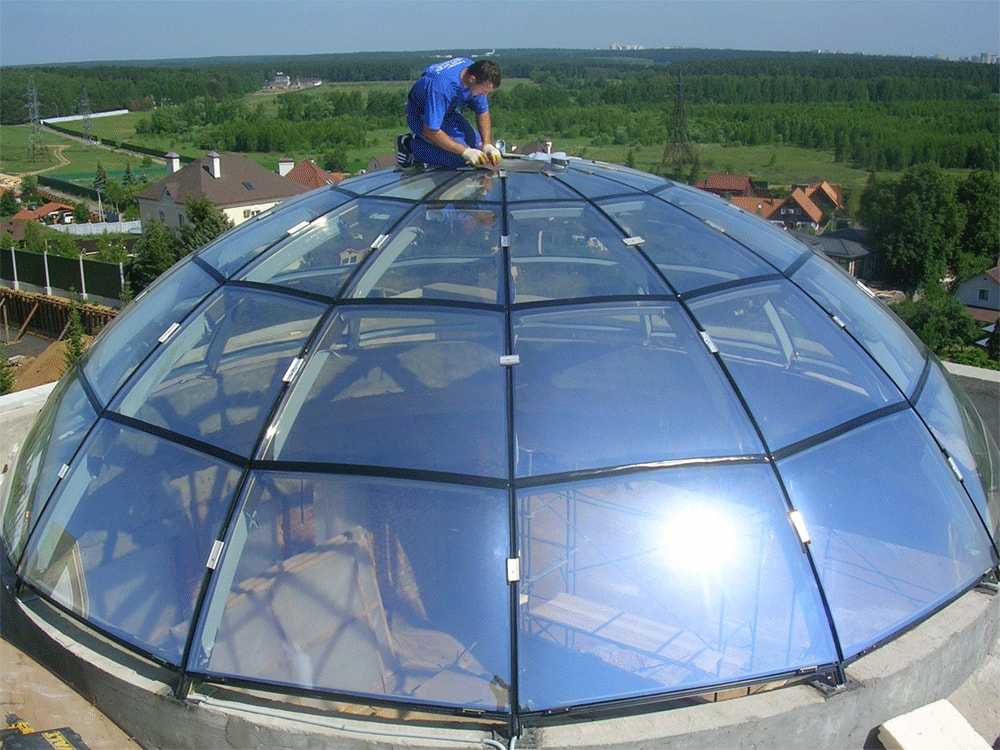 На сегодняшний день дом купол можно оборудовать как обычными стеклопакетами, так и скайлайтами, представляющими собой многоугольные оконные системы. Их расположение следует рассчитывать с учетом возможности максимальной экономии на пассивном отоплении и кондиционировании, обеспечиваемым конвекционными потоками.