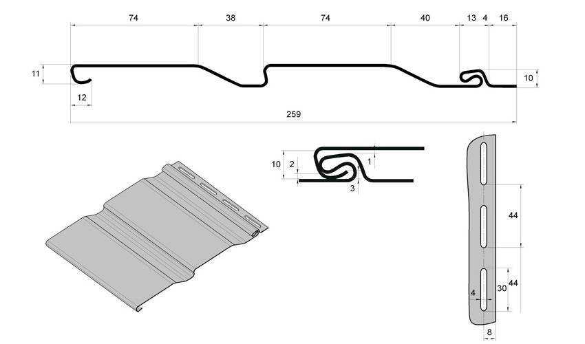 Софит закрывает пространство под крышей, не позволяя влаге попадать под конструкцию облицовки. Такой металлосайдинг обладает отличительной чертой – наличием большого количества сквозных отверстий. Наличие перфорации позволяет проникать потокам воздуха под облицовку. Таким образом, удаляется конденсат, а значит, сохраняется комфортный микроклимат внутри помещений.