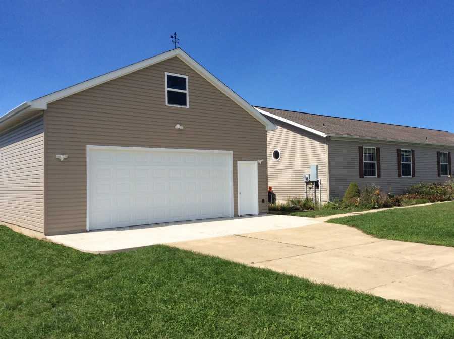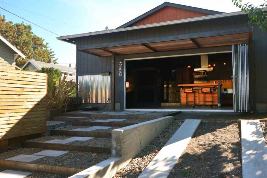 - Гараж не имеет сообщения с домом, зато есть дверь, которая позволяет выйти на задний двор;