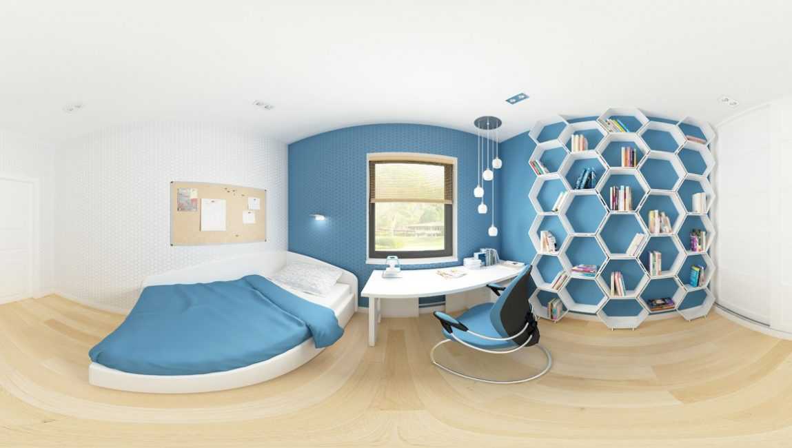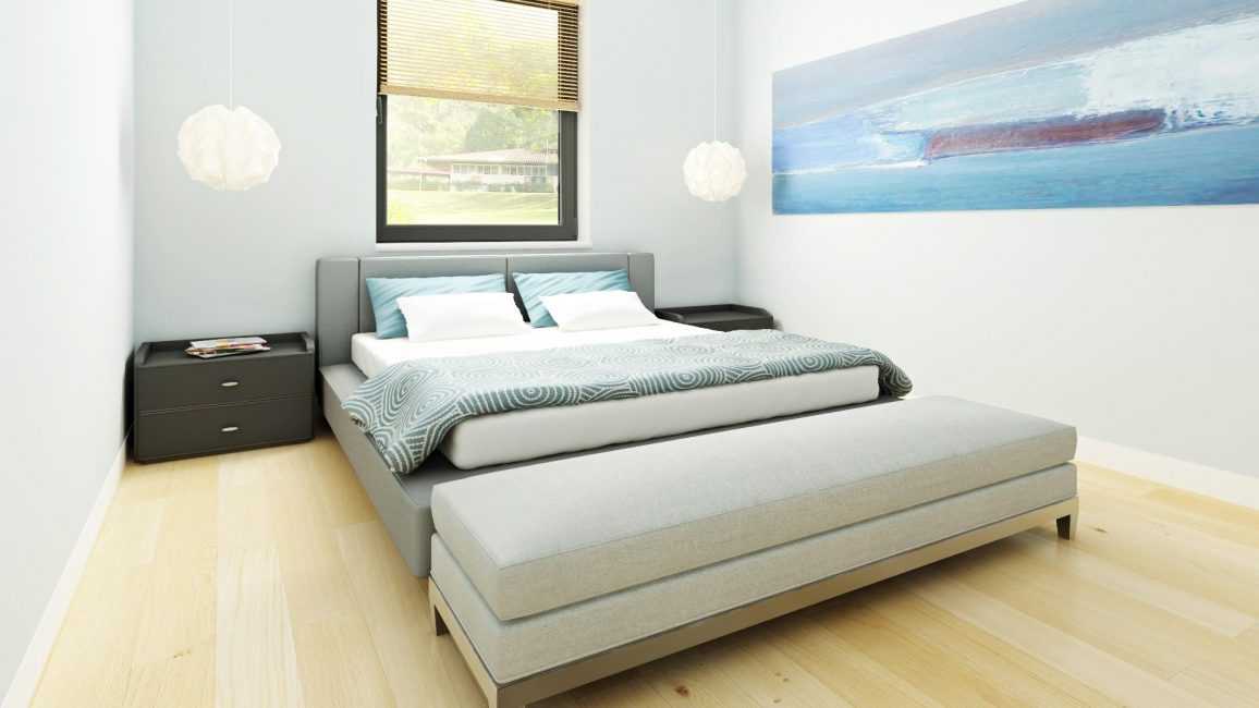 Небольшая, уютная спальня в голубых тонах