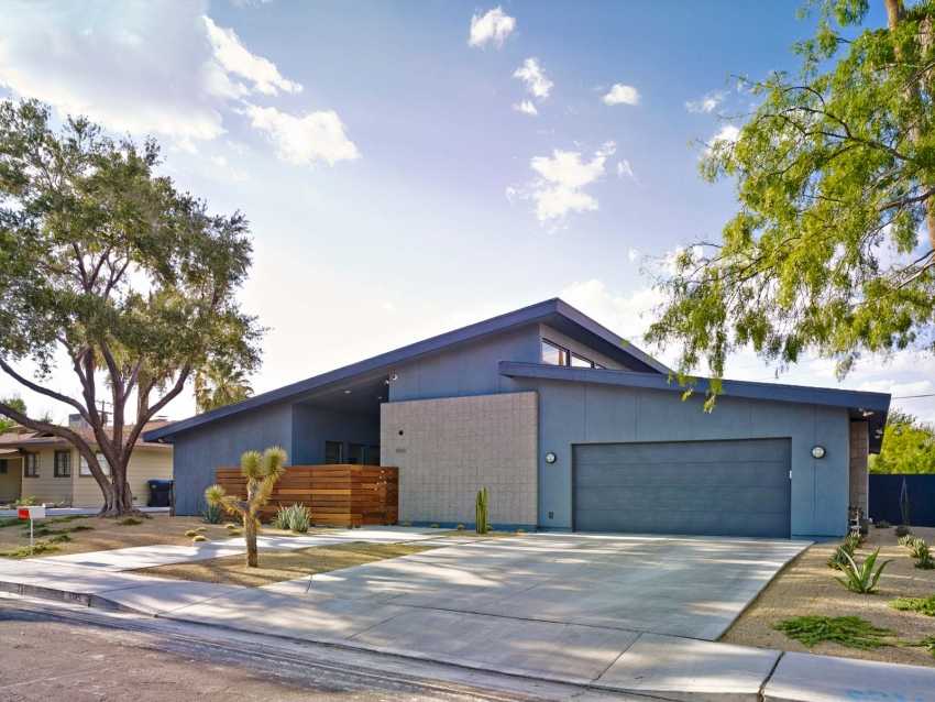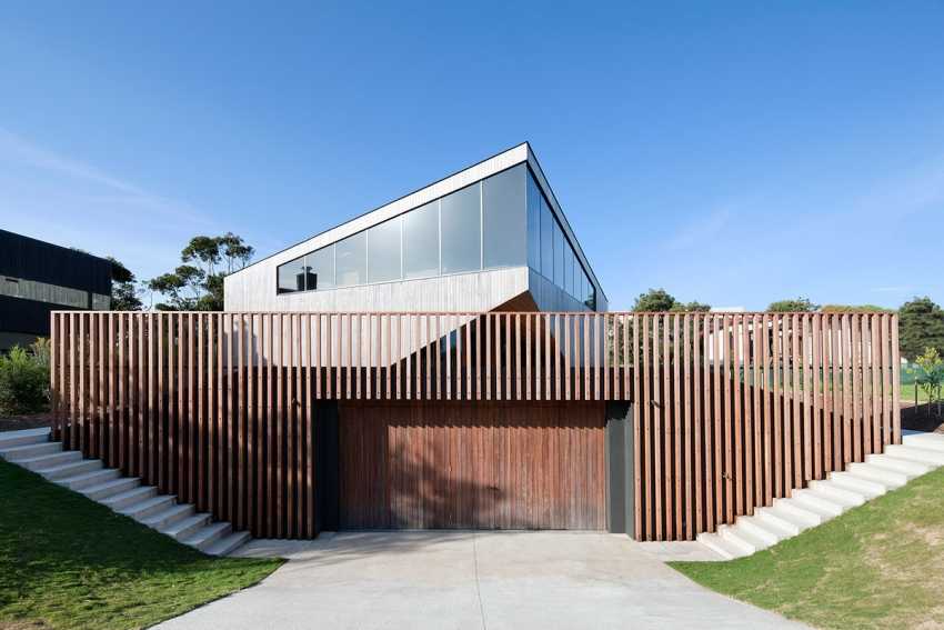 Пример удачного размещения гаража в одноэтажном доме в стиле модерн