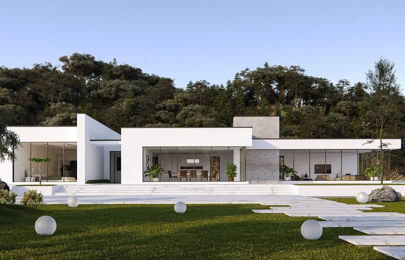 Вилла в современном стиле подразумевает открытость природе и большие пространства.