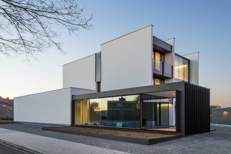 Плоская кровля, минимум декоративных элементов, сочетание светлых тонов, а большие окна располагают к общению с природой.