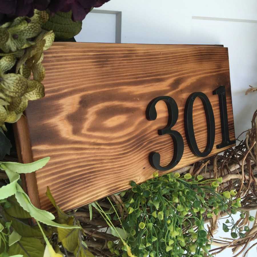 Чтобы создать необычную табличку, можно взять любую деревянную дощечку или фанерку. Нужный размер и форму придать ей можно при помощи электролобзика – это под силу каждому. Табличку нужно отшлифовать наждачкой или шлифовальной машинкой, чтобы она была ровной и гладкой. После этого ее можно покрасить в нужный цвет, нарисовать на ней цифры с номером квартиры. Помимо цифр многие пишут приятный и красивый текст: «Дом, где живет любовь», «Мой дом – моя крепость» и многие другие лозунги.