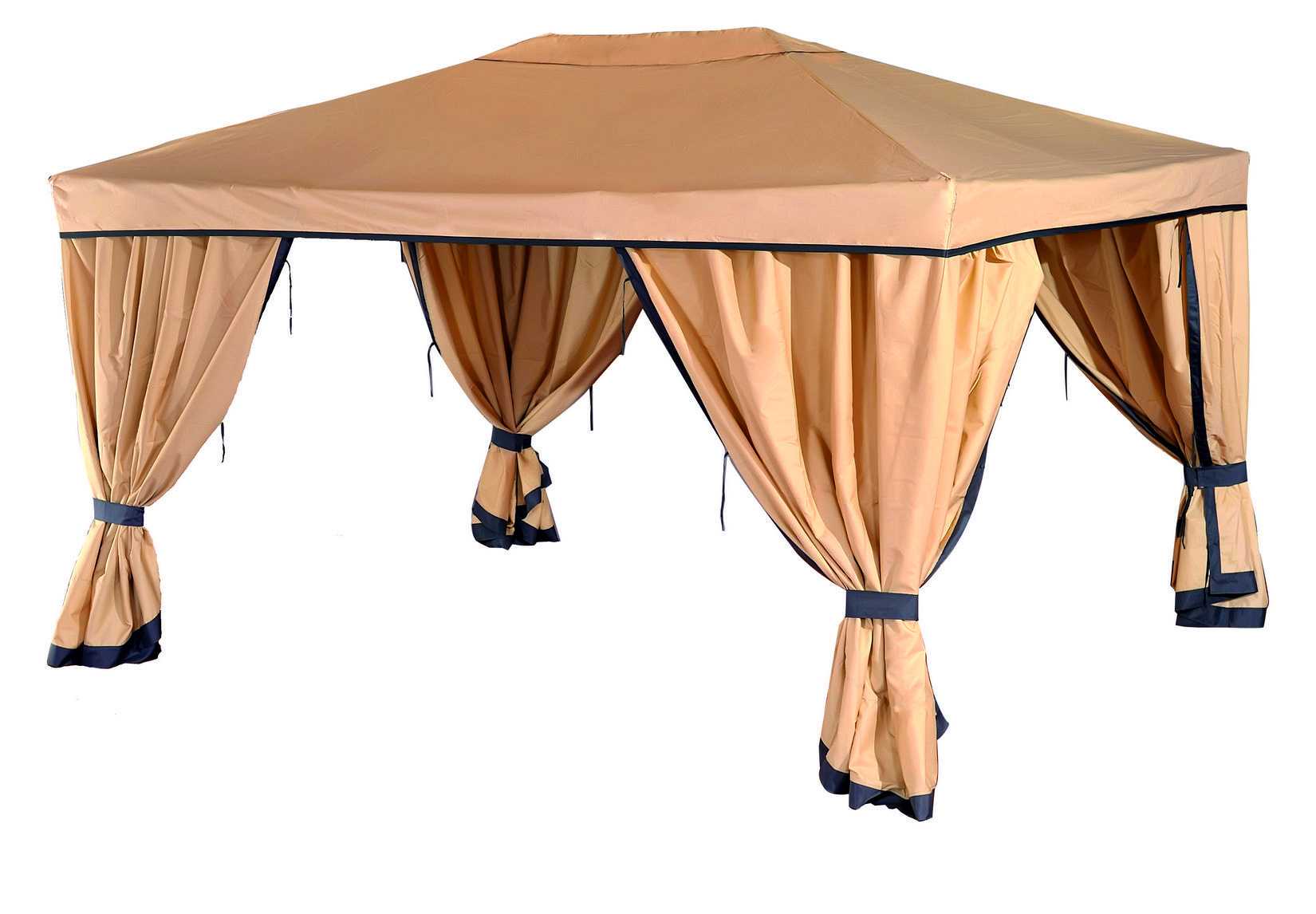 Для изготовления большинства конструкций используются алюминиевые или металлические трубки небольшого сечения. Современные производители беседок-шатров предлагают изделия разных модификаций.
