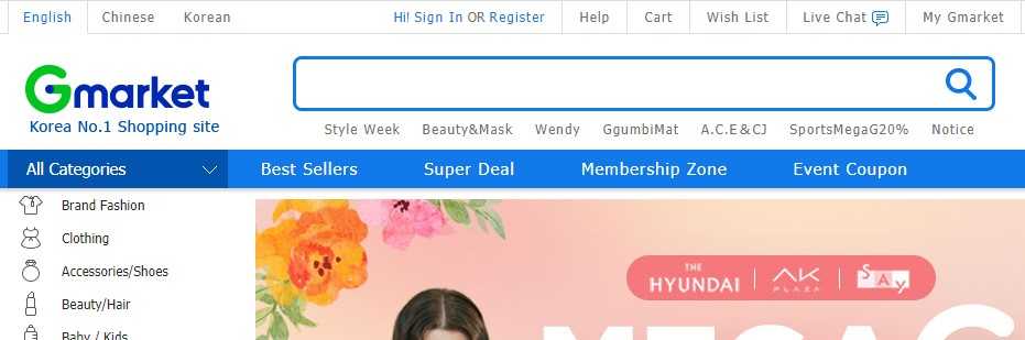 Это корейский аналог Алиэкспресс, через который можно заказать доставку на территорию России (только ограниченного числа товаров). Но в этом случае придется оплатить доставку, которая может оказаться дороже самого заказа. Тем не менее, эту площадку часто используют для заказа корейской косметики, так как здесь большой выбор и сравнительно небольшие цены. Также в каталоге можно найти и ряд остальных товаров, вроде одежды и товаров для дома.