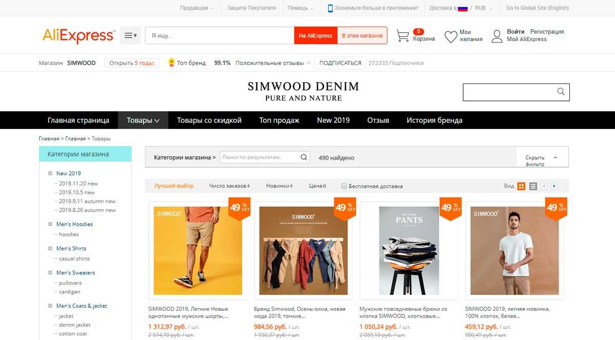Ко всем товарам магазина Simwood идет подробное описание, фото в реальной жизни и отзывы покупателей. Одна из самых продаваемых позиций у мужчин – джинсы кэжуал облегающего кроя с выбором из 23 цветов. На большую часть ассортимента Simwood действуют скидки до 49%. Осеннюю куртку с капюшоном можно купить за 3000 руб. вместо 6000.