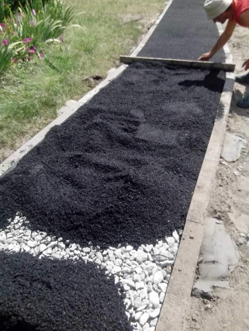 Современное резиновое покрытие выпускается в виде рулонов до 1,5 м шириной, плитки разнообразной конфигурации и цвета, и крошки. Но так как работа с наливным резиновым покрытием из крошки требует специальных навыков и оборудования, для самостоятельной укладки лучше использовать рулон или плитку. А поскольку для резинового покрытия требуется надежное основание, то этот материал хорошо подходит для обновления бетонных дорожек.