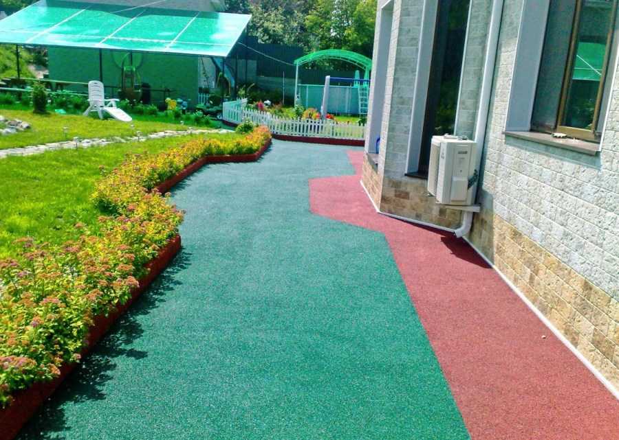 Если на даче предусмотрена детская площадка, тогда лучше вымостить ее инновационным материалом — тротуарной плиткой с наполнителем из резиновой крошки.